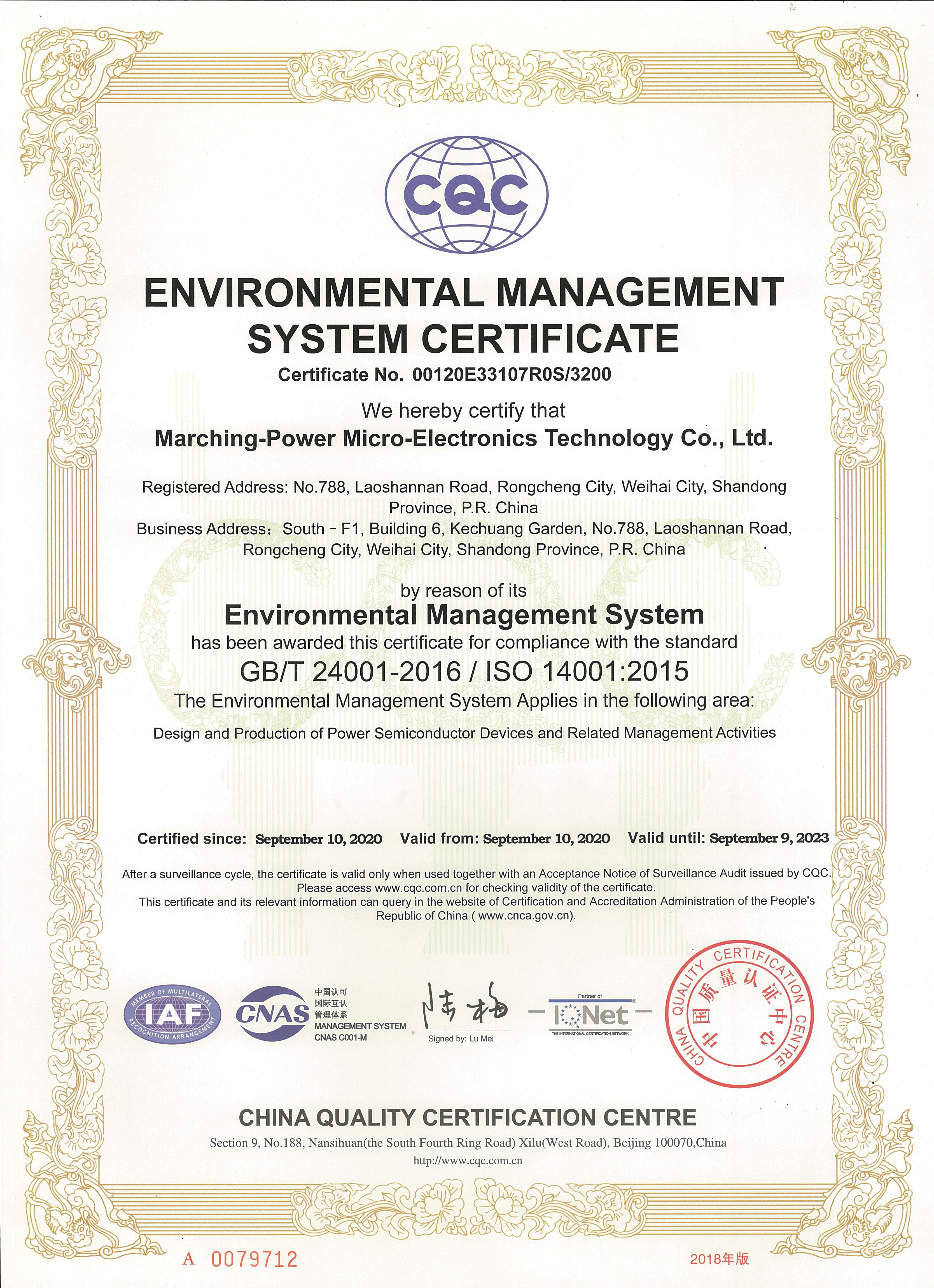 Quality certificate ISO certification-14001